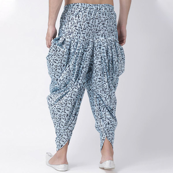 Blue printed mid-rise dhoti with gathered and pleated detail, has an elasticated waistband