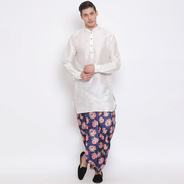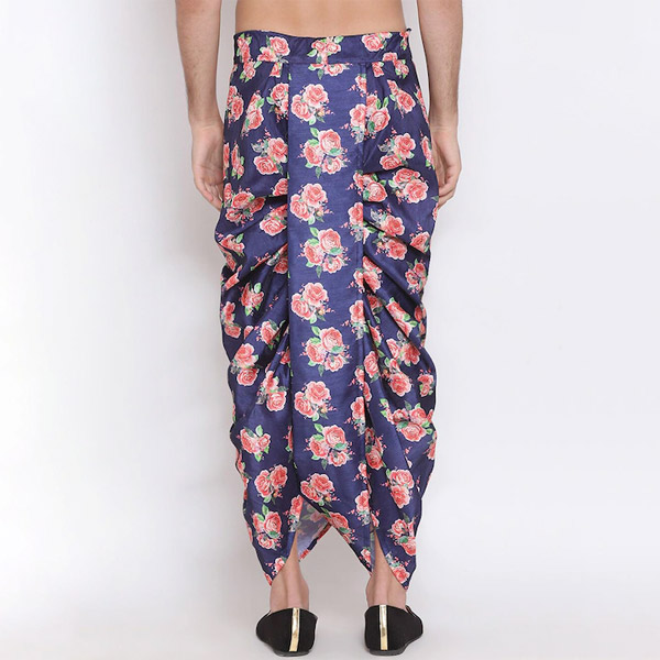• Navy blue dhoti pants with intricate embroidery detailing, has an elasticated waistband with slip-on closure