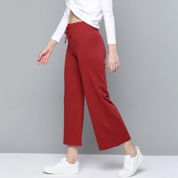 Women Red Solid High-Rise Cropped Wide Leg Track Pants Description Reviews (0) ₹1,276.55 ₹1,276.55 ₹1,276.55 Add to cart Buy Now