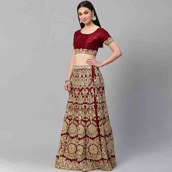 Maroon Poly Silk Aline Lehenga