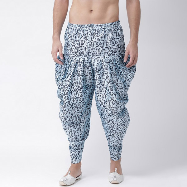 Blue printed mid-rise dhoti with gathered and pleated detail, has an elasticated waistband