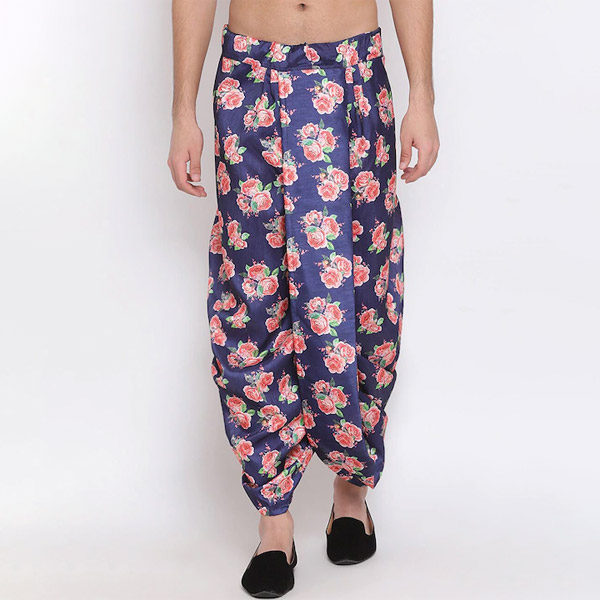 • Navy blue dhoti pants with intricate embroidery detailing, has an elasticated waistband with slip-on closure